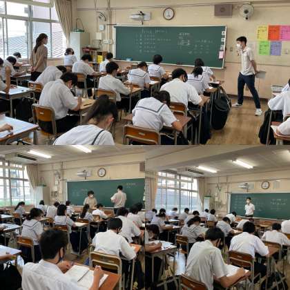 さて、3年生は今日(8日)第1回実力テスト実施日です。定期テストとは違い範囲が広く思うように点数が取れないかもしれませんが最後まで頑張りましょう。高校入試合格目指して一人ひとり実力を高めていきましょう。