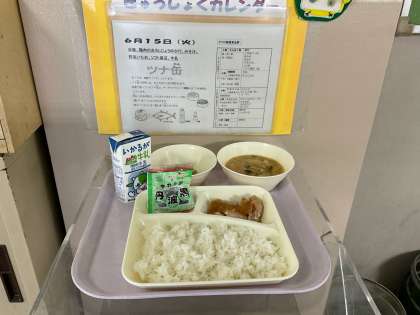 鶏肉のおろしじょうゆかけ みそ汁 野菜いため ソフト黒豆 ごはん 牛乳