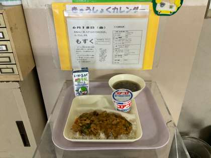 和風カレー丼 もずくとオクラのとろり汁 ヨーグルト 牛乳