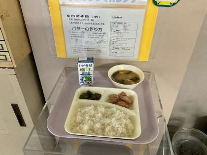 鶏肉のしょうゆバター焼き こまつなのみそ汁 きゅうりのあえもの ごはん 牛乳