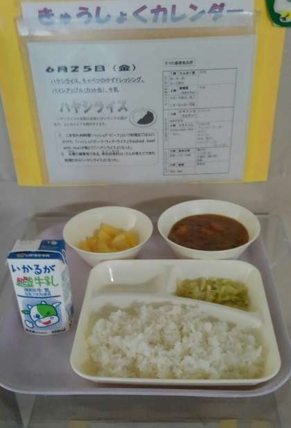 ハヤシライス キャベツのゆずドレッシング パインアップル(カット缶) 牛乳