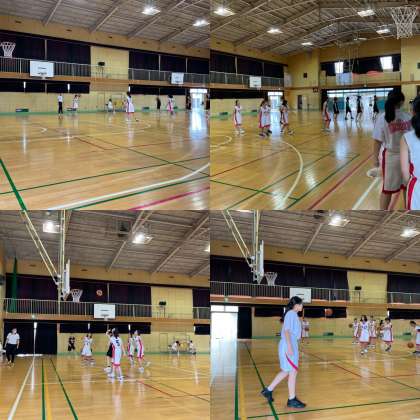 一昨日(10日)、東淀川区の井高野中学校で女子バスケットボール部の夏の大会(大阪選手権大会大阪市地区予選女子2回戦)がありました。1年生5名、2年生4名、3年生3名で対戦校の茨田中学校と試合をしました。新型コロナウイルス感染症の影響で練習時間が十分に確保できない中での試合、1年生は初めての試合ということもあり緊張感が伝わってきた大会となりました。結果は残念ながら大差で負けてしまいました。さあ、気持ちを切り替えて秋の試合目指して基礎練習から頑張りましょう。