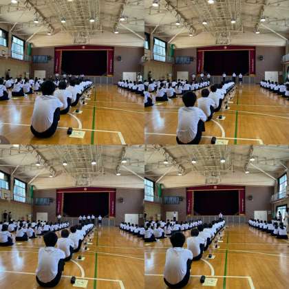 今日(20日)、1学期終業式をリモートで行いました。生徒たちは各自、自分の教室で映像を通しての全校集会同様の3密を防いだオンライン終業式となりました。教務主任の先生の司会で校長先生からのお話と生活指導担当の先生からの夏休みの過ごし方・諸注意等のお話などがありました。