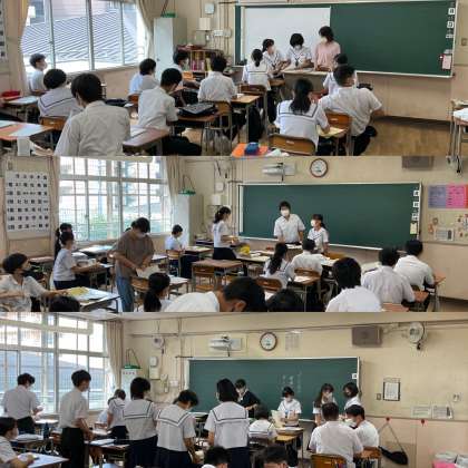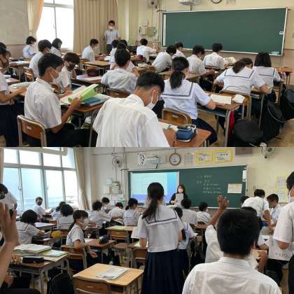 始業式後の各学年、学級での様子です。たくさんあった夏休みの課題、宿題の回収確認作業たいへんです。