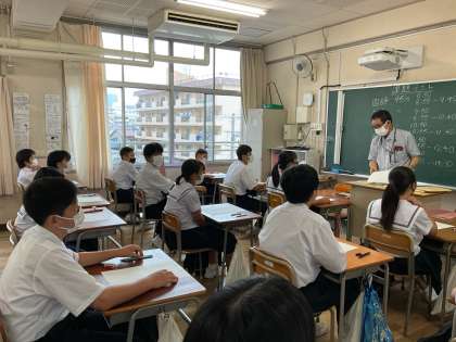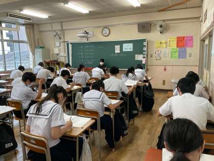 今日(2日)は朝から雨、久しぶりに真夏日から解放されてのテスト実施日となりました。3年生はチャレンジテスト、1・2年生は課題テストとそれぞれに頑張っていました。新型コロナウイルス感染症の影響で大阪市内にある公立中学校130校のうち何校がこの3年生チャレンジテストを実施できていないのか、320校を超える大阪府立の公立中学校で何校が未実施なのかはわからないが本校は大阪府教育委員会の実施マニュアル通りに幸いにも行うことができました。結果は先になりますがテスト返却時には各自での分析を行ってほしいものです。1・2年生は課題テストでしたが3年生同様、テスト返却時の答案見直しはしっかりと行う習慣を身に着けてほしいものです。一つ一つのテストの積み重ねが入試本番での良い結果につながると信じて頑張っていきましょう。健闘を祈ります。