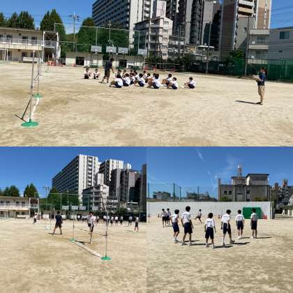 今日(10日)、初秋を感じる朝晩の空気とは違い日中は非常に暑い一日となりそうです。久しぶりの快晴の中、運動場では3年男子体育の授業で走り高跳びの種目に取り組んでいます。今年の体育大会では走り高跳びの競技が加わるようです。しっかりと一人ひとり体力を付けてがんばってほしいものです。