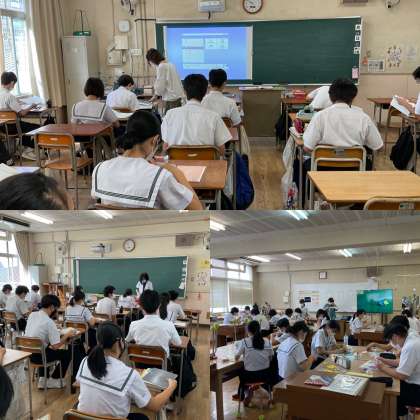 昨日(23日)はお彼岸の中日でしたので、不要不急ではなくコロナ禍ではありましたがお墓参りに行かれた方も少なくないと思います。昔から「暑さ寒さも彼岸まで」という言葉がありますが、冬の寒さ(余寒)は春分頃まで、夏の暑さ(残暑)は秋分頃までには和らぎ、凌ぎやすくなるという意味で、年に2度使われる言葉です。今日(24日)は爽やかな風が心地よい朝を迎えています。3年生にとっては中間テスト前の貴重な授業ということもあり、集中して授業に頑張っている人が多く感じられました。コロナ対策や熱中症対策など毎日が大変でイライラが続くこともあるかとは思いますが、今が踏ん張りどころです。頑張りましょう。