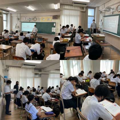 今日(27日)の午後は5時限目に格技室で2年生男子の体育の授業、そして休憩を挟んで6時限目には2年2組の道徳の授業でそれぞれ研究授業を行いました。授業にあたった生徒の皆さん、担当された先生方ご苦労様でした。教育センターの教育指導員さんがコロナウイルス感染症拡大予防対策のために来校することができない状況だったので、いつもと違う研究授業のリモートによるオンライン授業研究となりました。また、東三国中の先生方も多く参加していましたので皆さんも少し緊張気味だったのではないでしょうか。でも、よく頑張っていました。