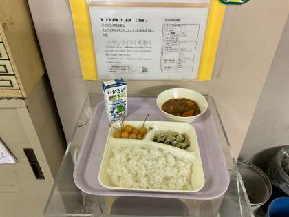 ハヤシライス [米粉] キャベツのひじきドレッシング さくらんぼ(缶) 牛乳