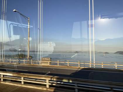 バスは瀬戸大橋に入り、まもなく与島PAです。