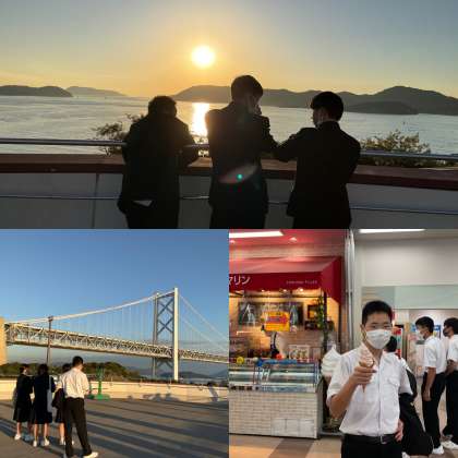 与島PAではお買い物、ソフトクリームも買い食いOK。夕陽が綺麗ですね。