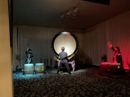 世界2位の大きさの大太鼓、鷲羽太鼓の饗宴がロビーではじまりました。