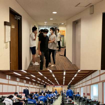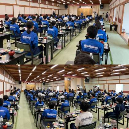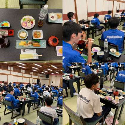 起床後、身支度をして鷲羽の間に集まり朝の集い、そして朝食です。いただきます。