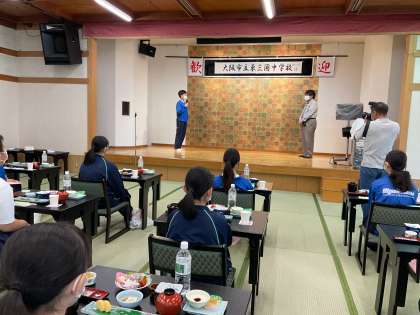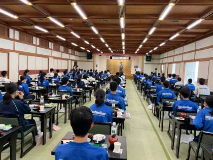 ごちそうさまをした後、お世話になったホテルの人にお礼の言葉、退館式です。この後は、部屋にもどって帰る用意をして、30分玄関に集合です。