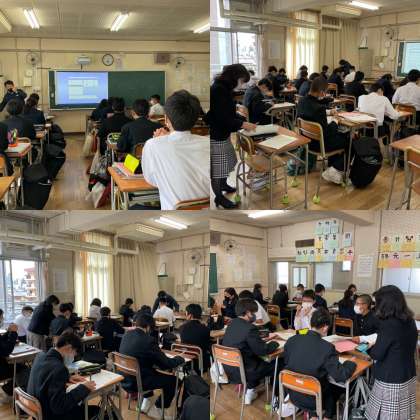 今日(21日)5・6時限目、教育センター教育指導員さんをお迎えして、英語・国語の授業研究に取り組みました。授業者は参観後には教育指導員さんから指導助言をいただきました。教員がより高い授業力を身に着けることで、東三国中生がさらに教科学習に興味・関心、意欲を持って、授業に取り組んでいけることを期待します。