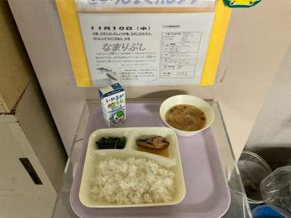 なまりぶしのしょうが煮 ほうれんそうのごまあえ ごはん なめこのみそ汁 牛乳