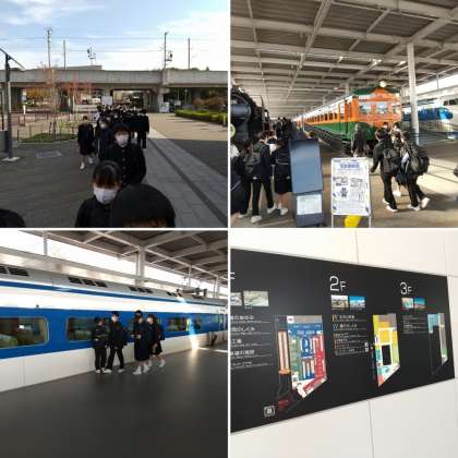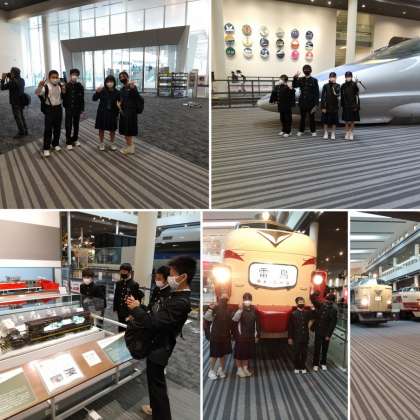 学年の先生から班行動をしっかりするよう促され鉄道博物館内へ…いろんな鉄道を見て楽しそうに見学をしています。クロムブックを使い写真を撮っているグループもいました。思っていたより大きな施設ですね。