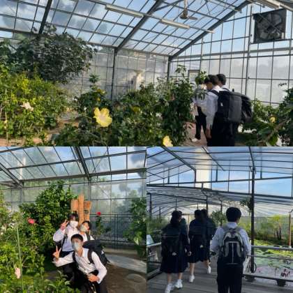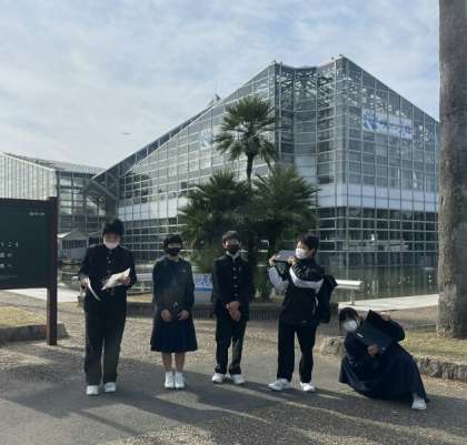 自由選択で咲くやこの花館を選んだグループです。鶴見区の花博記念公園鶴見緑地内にある屋内植物園で、日本最大の温室を有する日本有数の総合植物館なのです。もともとは、EXPO'90「国際花と緑の博覧会」で大阪市のパビリオンとして使われたものです。名称の「咲くやこの花館」は、当時一般公募で決定したもので、古今和歌集にうたわれている、「難波津に咲くやこの花冬ごもり 今は春べと咲くやこの花」の古歌に由来したということです。
