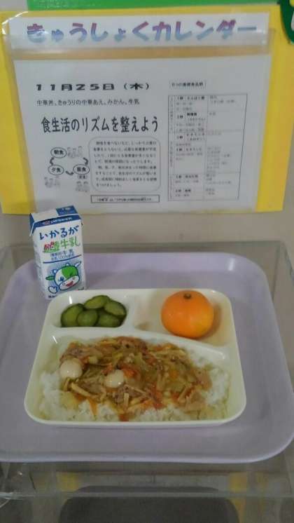 中華丼 きゅうりの中華あえ みかん 牛乳