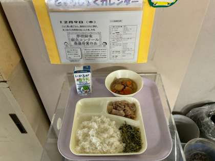 じゃこ菜っ葉ごはん 豚肉のスタミナ焼き あつあげと冬野菜のあったか煮 牛乳