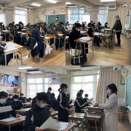 今日(10日)は朝から3年生は第4回実力テスト(1限…社会・2限…国語・3限…数学・4限…英語・5限…理科)です。給食をはさんで午後からもテストが続きます。進路を決定するとても大事なテストですが、今まで学習してきた成果を存分に発揮してほしいものです。59期生の皆さん、頑張りましょう。
