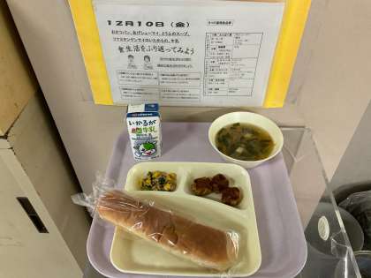 あげシューマイ とうふのスープ ツナとチンゲンサイのいためもの おさつパン 牛乳