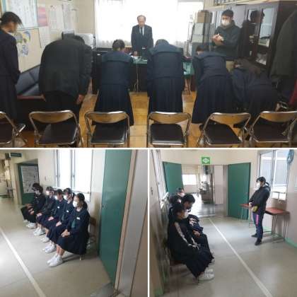 質問に対しては、大きな声ではっきりと自分の考えを端的に伝えることを心がけ、よく聞かれる質問もありますので、もう一度、担任の先生と今回の面接について一人ひとり振り返っておくことが大切だと思います。なお、本日の欠席者については後日、校長面接を実施しますので担任の先生と日程の調整を相談のうえ、決めておくようにしましょう。