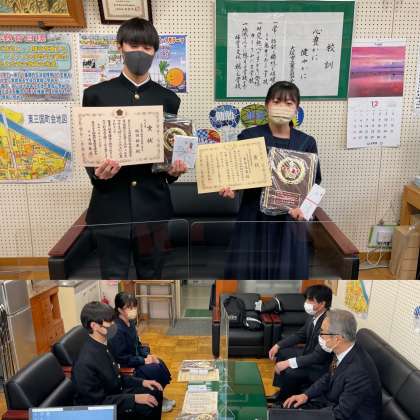 全国納税貯蓄組合連合会および国税庁が募集した「税についての作文」コンクールにおいて本校から3年生の2名がみごと東淀川税務所長賞と納税貯蓄組合連合会会長賞の表彰を受けました。コロナの影響で区全体での表彰式が出来なかったため所長さん自らが来校しての賞状等の授与となりました。全国で45万人、淀川区・東淀川区で1,500人が作品を応募される中での賞ということでした。税金が世の中でどのように使われているか、役立っているかを作文にした作品が認められたとのことでした。本当におめでとうございました。指導に携わった社会科の先生ご苦労様でした。年明けの1月から確定申告が始まりますが大阪メトロ御堂筋線西中島南方駅から徒歩5分の所にある東淀川税務署1階ロビーで今年度選ばれた21作品の展示が行われるとのことですので時間がありましたらご鑑賞いただければ幸いです。この度頂いた賞が東三国中学校のさらなる発展を予感させる、そんな表彰式でした。