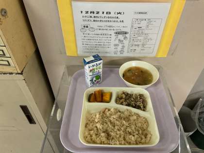 豚肉と干しずいきのみそ煮 うすくず汁 焼きかぼちゃの 甘みつかけ ごはん 牛乳