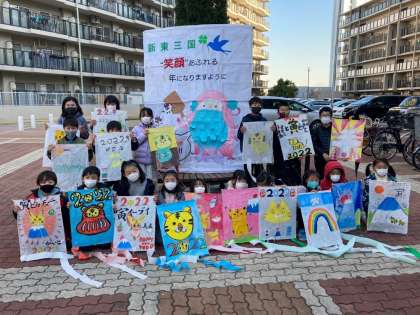 今年(令和4年)も淀川区役所と淀川区子供会連合協議会、淀川区たこあげ大会実行委員会主催の第48回新春たこあげ大会を淀川右岸西中島地区河川敷で16日(日)に開催する予定でしたが残念ながら中止となりました。すでに参加を決めて、8日(土)に新東三国連合子供会タコつくり教室に参加した子どもたちが子供凧デザインを完成させていました。当日はお天気にも恵まれ、子どもたち自身で作成した子供凧のテストフライトを開催後に行いました。