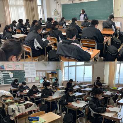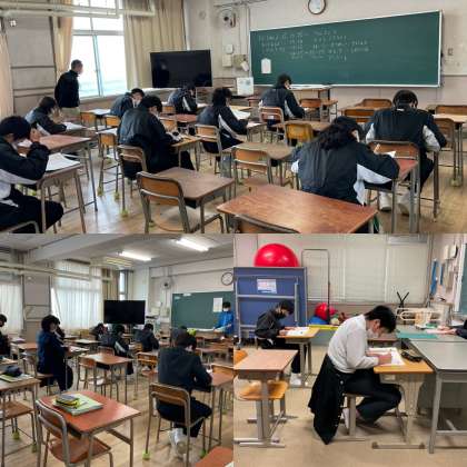 今日(4日)は午後から2年生が漢字検定にチャレンジしています。平成30年度より、区役所から予算をいただき、子どもたちの学力向上を目的に淀川区として区内の中学2年生を対象に実施しています。事前に受験する級を決めて一生懸命に挑んでいます。3級が中学卒業程度ですが、準2級・2級にチャレンジする生徒もいます。漢字能力はふだんの国語の勉強だけでなく数学や英語などの学習に必要な「基礎学力」にもなっています。小学校からの漢字1,026字を含め、今からでも漢字学習をしっかりと定着させていきたいものです。テストで結果が出れば、きっと「やればできる」という達成感から勉強への「自信」がつき、学ぶ意欲も向上することでしょう。良い結果が各自に届くよう期待しています。