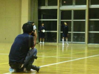 飛行機キャッチが終わり円盤投げ…紙皿を投げで距離を競います!!