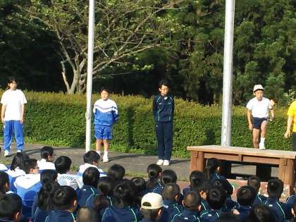 朝のつどいでは、ラジオ体操の代表で行い、学校紹介も頑張って1日始まりました!!