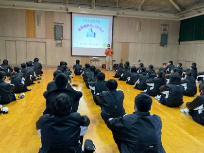 今日(21日)、6時限目に2年生は格技室で進路学習をしていました。進路指導主事の先生から高校の決め方や評定が、どのように入試で活用されるかなどを学んでいました。60期生の皆さんも知らなかったことが分かって、有意義な時間になったことでしょう。一つ先輩の3年生59期生の中にはすでに4月から進学する学校が決定している人もいますが、大半は公立高校の一般選抜入試(3月9日)で進学校を決める人がほとんどです。そのために、先週から明日まで3年生は進路懇談をしているのです。私立高校を併願で合格した人が今度は公立の受験校を最終決定するのが一般的で、志望校が決まれば、皆さんが学年末テストを受けている時期に出願となり、入試当日を迎えることになるのです。あっという間に皆さんの番が来ますよ…