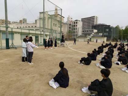 今朝は天気もよく、グラウンドに1年生から3年生までが集合して全校集会を行いました。今後の感染状況や気温等によって変更もありますが、今年度はできるだけ全校生徒がそろった形での集会を実施したいと思います。
