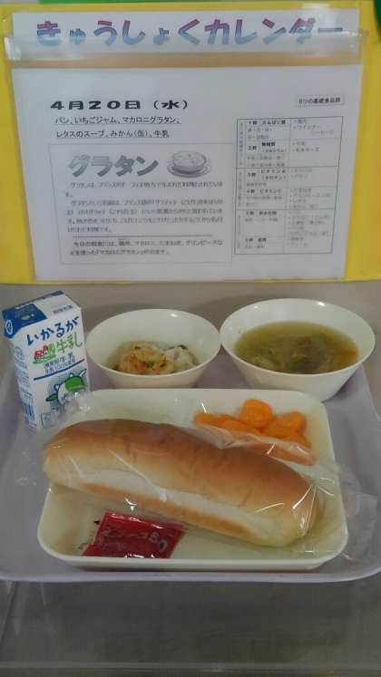 マカロニグラタン レタスのスープ みかん(缶) 大型コッペパン
