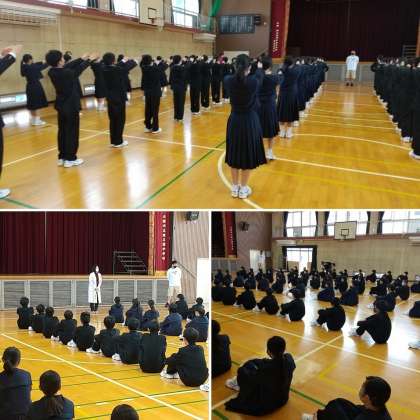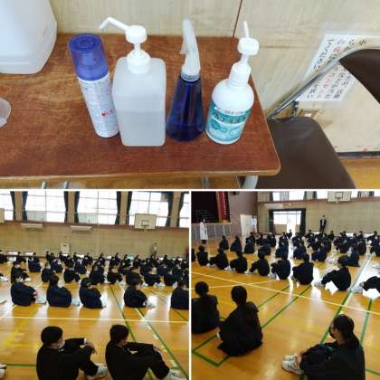 今日は1年生学年集会の日です。検診の話や家庭訪問中の過ごし方、部活動体験に関する注意などの話がありました。集中して話を聞くことができていましたが、数名遅刻した人もいました。時間をしっかり守りましょう。