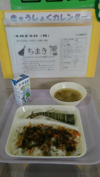 きんぴらちらし すまし汁 ちまき ごはん 牛乳