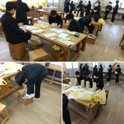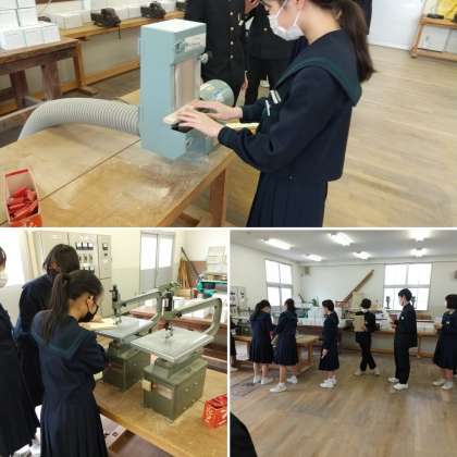 2年生の技術の授業では材料加工実習を行っています。1年生からの続きなので実習の工程の進み具合はそれぞれ違いますが、のこぎりの使い方、糸鋸盤やベルトサンダーでの調整や加工、釘打ちと修正など、グループで協力して取り組んでいます。数週間後の完成が楽しみですね。