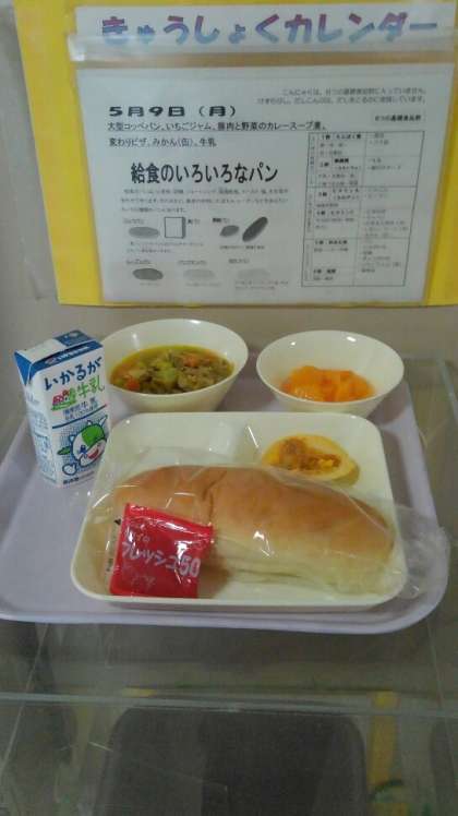 豚肉と野菜のカレースープ煮 変わりピザ みかん(缶)