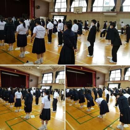 集会では来週の中間テストについての説明がありました。わからないことや不安なことがあったら、遠慮しないで担任の先生や学年の先生に質問して、今のうちにしっかり確認しておきましょう。