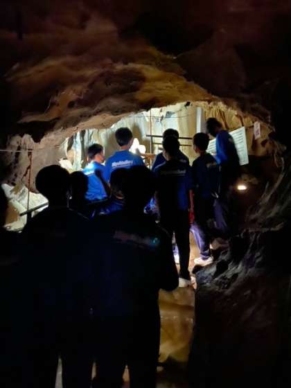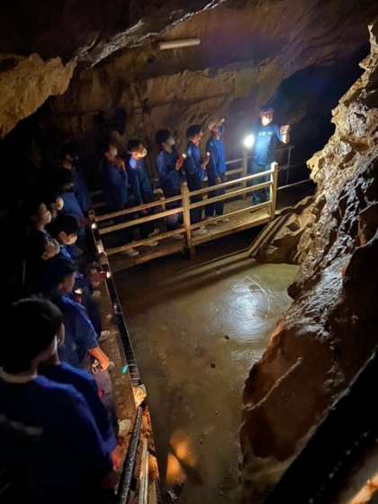 まずは洞窟ものがたりです。インストラクターの方の説明を聞きながらの洞窟探検です。