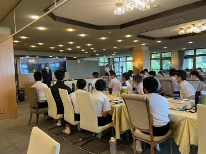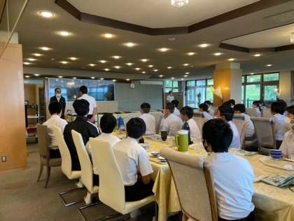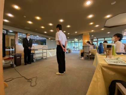 朝食の後の退所式の様子です。