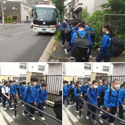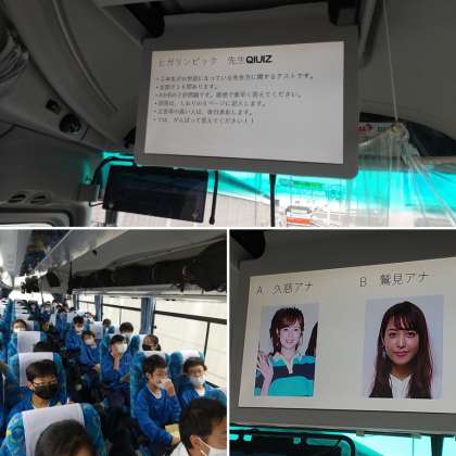 バスの中では、係の人が準備してくれた先生クイズで盛り上がっています。