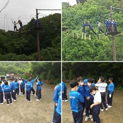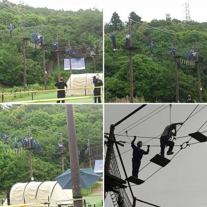 ハイエレメントは全長200m、地上7mの空中アスレチックです。スリル満点ですが、進むにつれて楽しんでいるようです。