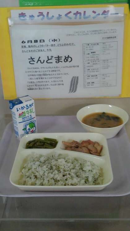 鶏肉のしょうゆバター焼き とうふのみそ汁 さんどまめのごまあえ