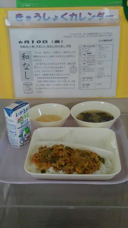 和風カレー丼 すまし汁 和なし(カット缶) ごはん 牛乳
