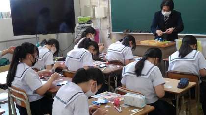 宣真高校の「保育入門講座(造形表現)」です。誰もが知っているアニメキャラクターを折り紙で制作することにチャレンジしました。