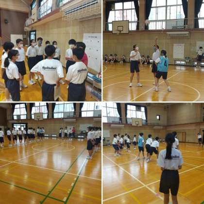 1年生は1学期最後の学年行事として球技大会を行いました。各クラスの学級代表と体育員が率先して進行し、みんなが楽しめる行事となりました。