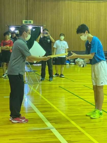 7月31日に行われたバドミントン部のブロック大会の2年生男子シングルスの部、白熱したラリーの結果、惜しくも優勝を逃し、準優勝となりました。今回の悔しさをこれからにつなげてほしいと思います。